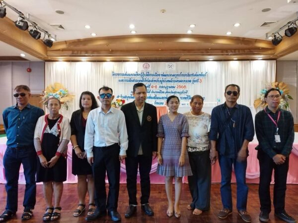 ระหว่างวันที่ 4 – 6 กรกฎาคม 2568 นายอดิศักดิ์ สอนทอง นายกสมาคมวิทยากรฝึกอาชีพคนตาบอด พร้อมด้วยคณะกรรมการสมาคม เข้าร่วมโครงการ “พัฒนากลยุทธ์การประชาสัมพันธ์และการสื่อสารยุคดิจิทัลสำหรับผู้นำองค์กรคนตาบอด รุ่นที่ 3” ซึ่งจัดโดยสมาคมคนตาบอดแห่งประเทศไทย ณ โรงแรมวังใต้ จังหวัดสุราษฎร์ธานี